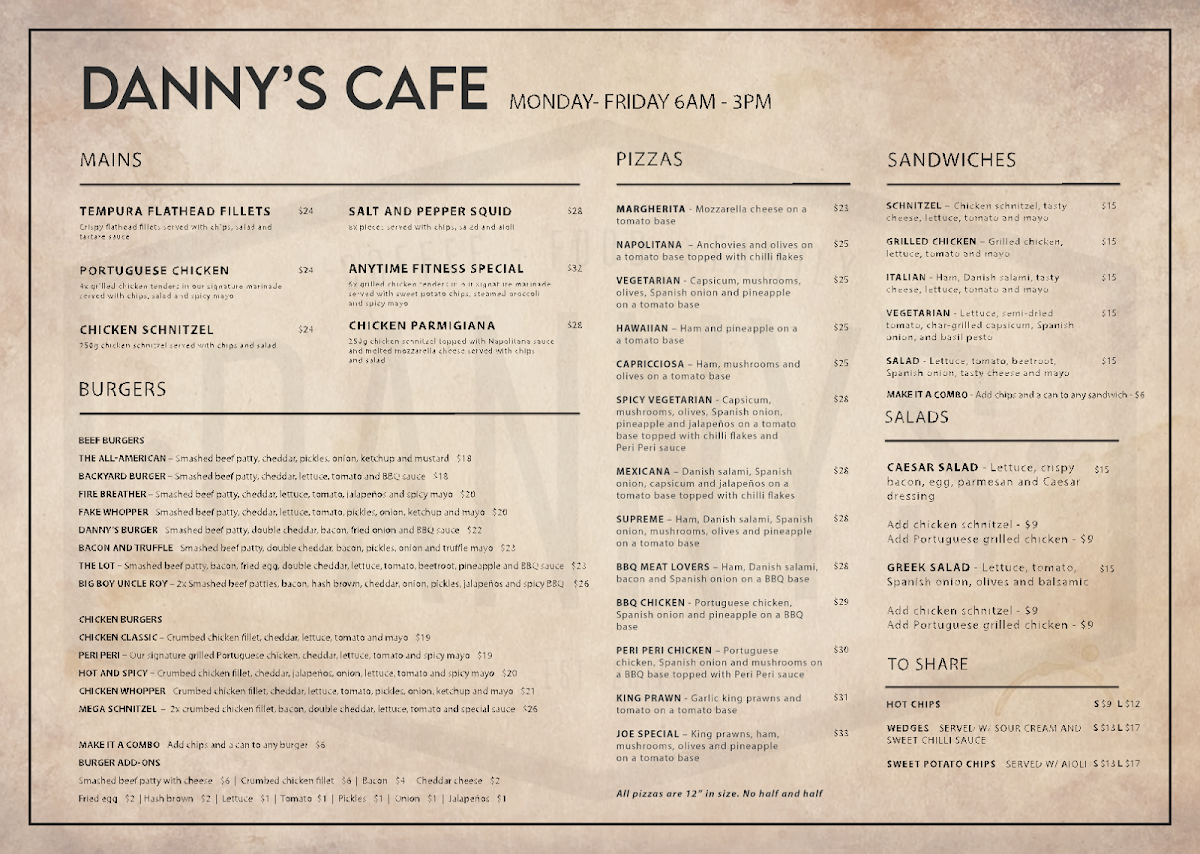 Danny’s Cafe Menu